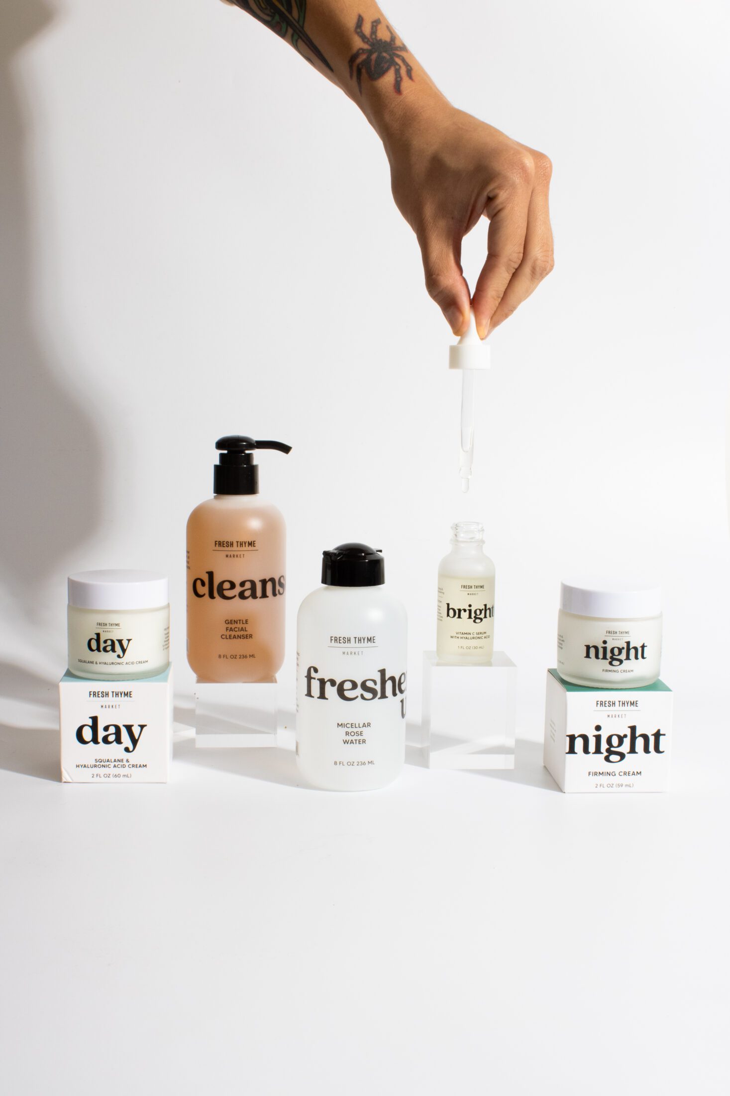 The result: a design that feels new and fresh, yet unmistakably Fresh Thyme. The packaging system is clean, easy to navigate, and visually communicates a simple skincare routine—while also being something you’d be proud to leave out on your bathroom counter.