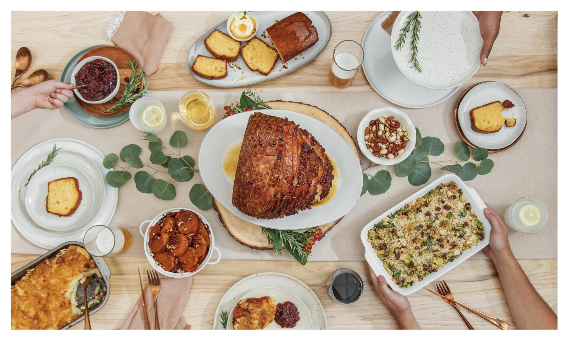 If you’ve ever been to a traditional Thanksgiving feast, you know it’s hard enough to get 1 Turkey cooked to perfection on a reasonable timeline. Needless to say, our team rose to the occasion and captured 3 Whole Turkeys, 1 Prime Rib, 1 Whole Ham, and 1 delicious Slice of Poached Salmon, and 33 side dishes in just a few days.