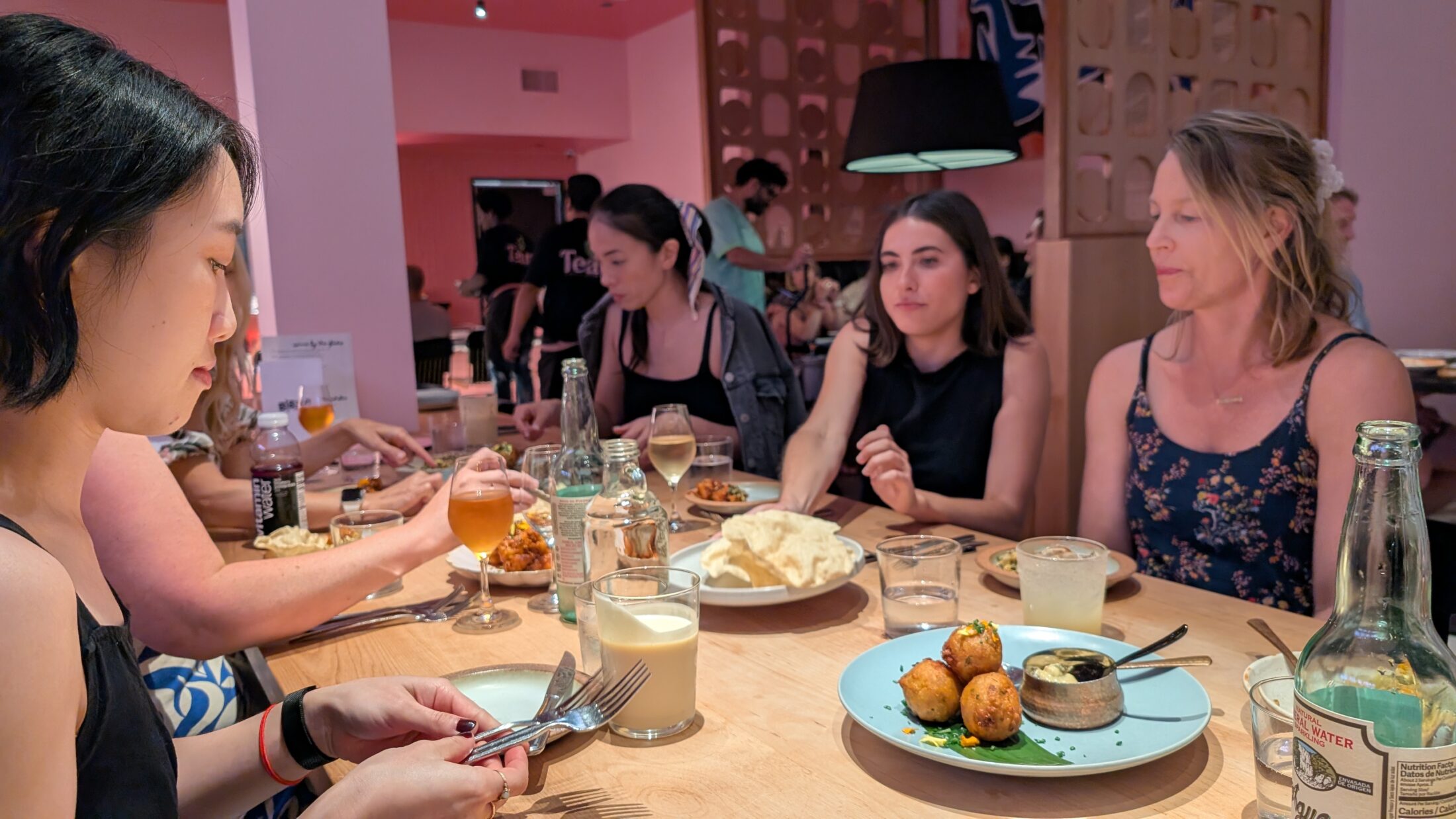 In true Creative Pack fashion, there wasn’t much time to spare after lunch before it was time to get ready for dinner. Following a quick breather, the team headed to the Arts District to dine at Bibi Ji, a modern Indian restaurant and wine bar blending bold flavors with locally sourced ingredients and a vibrant, welcoming atmosphere inspired by Indian hospitality. The menu offers plenty of vegetarian-friendly options, along with a generous selection of natural wines.